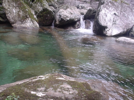 釣行記 リストへ戻る 釣行記2006/8/27 久々の源流釣行の巻 タイトルのとおり、久々に源流へ釣行しました。 ![]() ボクがよく行く吉野川の源流はこんなところです↑ 基本的に岩ゴロゴロの山岳渓流で、今回はこの支流に入ってみました。 ![]() 最初の一匹目はエルクヘアカディスに出た15cmくらいのアマゴでした。 落ち込みの白泡からヒョロヒョロっと出てきてパク!っと いいかんじで食ってくれました。 前日雨が降った割に水量はさほど多くはなく、遡上しやすかったです。 ![]() 2匹目↓ ![]() 落ち込みの直前でパラシュートアントに出たアマゴ。 3匹目↓ ![]() これも落ち込み直前の岩陰からピョッ!と出ました。 この日は落ち込みで見切られ、開きで出ることが多かったです。 パターン的には次のような感じです。 スーッと近づいてきて、 アマゴ:「あ、やっぱ、やめた...。」 これは非常に悔しいです。 しかもヒョロヒョロとゆっくり出てきては、余裕で見切っていくのでした。 逆に、落ち込み直前の開きでは、魚も水面のフライを確認する時間は 2秒もありません。だから迷った挙句に潔く出るパターンが 多いように感じました。 でも、調子に乗ってやっていると、 かならず ![]() ↑これが釣れてしまうのでした。 ちなみに今回使用したフライは以下の3パターンです。 ![]() 右からエルクヘアカディス、イワイイワナ、パラシュートアント フックサイズはいずれも16番です。 そしてこの日はいつものようにヘビにも遭遇。 ![]() 真っ黒なつや消し色しているヘビで、岩場で日向ぼっこをしているようでした。 あとで調べたところ、これはカラスヘビと呼ばれ、 シマヘビの一種だそうです。もちろん毒はありません。 ![]() ↑ここはいいポイントでした。 岩の陰から、そーっと覗くと、 型のよいアマゴが3匹ほどひょろひょろ泳いでいました。 フライにフロータントを付けなおし、岩の陰からひょい!とキャストします。 白泡の切れ目にフライが着水。 そのままゆっくりとフライが流れていきます。 すかさず一匹が近づいてきて、じーっとみています。 そして次の瞬間! アマゴ:「あ、これ知ってる、ニセモノだ!」 という感じでまた完全に見切られたのでした。 出るときは出るのですが…。 ![]() ![]() 普段はこの辺で引き返すのですが、 この日は朝一で入渓したので、まだ十分に時間があります。 今回はいけるところまで行ってみることにしました。 ![]() この先は未知との遭遇でした。 いつもじゃ、ちょっと上がれないような岩場も頑張って上りました。 そしてさらにこのあと、さらなる試練に遭遇。 かなりヤバそうな滝。 ちょっと怖かったので、気合をいれるために 「ファイトー!イッパーツ!」と独り言をいい、 水をかぶりながら、這い上がりました。 そしてたどり着いた桃源郷は・・・・・・。 ![]() こんな砂防ダムがあったとは知りませんでした。 もうこれ以上は絶対上れません。 ここまでか・・・・。また戻るのたいへんだな〜。 そう思い、しばらく見ていると、 パシャ! なんとコンクリートの落ち込みで尺近いアマゴがライズしているのでした。 ![]() よしよし、絶対釣ってやる。 最初、不用意に近づいてしまったため、 静かに後ずさりしてポジションを立て直しました。 そして膝をついてしゃがみ、正確にキャスト。 ピンクのパラシュートポストがゆっくりと流れにのって移動します..。 そして次の瞬間 半分顔を水面に出したアマゴがガブー。 やりました! ![]() サイズは27cm これくらいになると、アマゴというより、なんだかトラウトって感じです。 ![]() めでたしめでたし。 しかし行きはよいよい帰りは怖い。 この後、とんでもない思いをして例の滝をくだり、 なんとか道に這い上がったのでした。 あーこわかった。 ![]() 皆さん無理な沢登りはやめましょう。 |