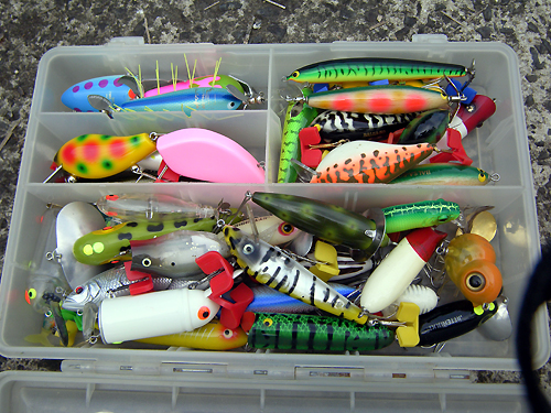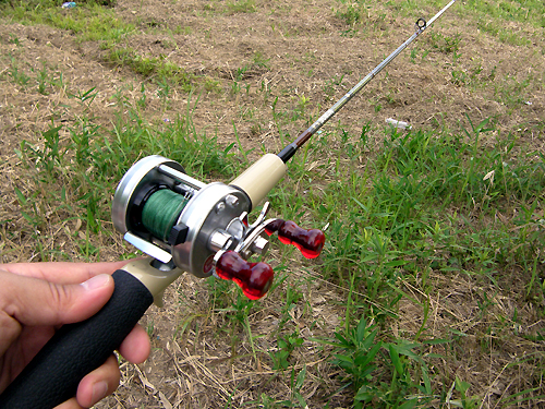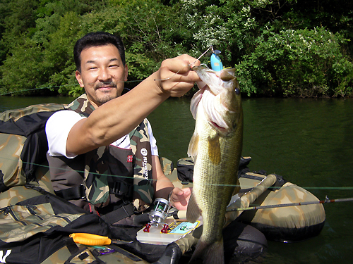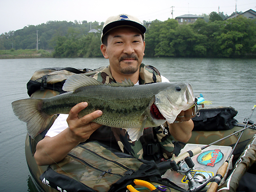 今回は東京から来たS氏との釣りを紹介します。 ![]() ↑ この人がSさんです。 昨年、さぬきうどんBASSツアーに来て、まあ、余り釣果も芳しくなく、 釣行記も書かずに忘れ去られた存在になっておりましたが、 今回は1年ぶりの再会&リベンジということで、 気合を入れての登場です。 ![]() ↑Sさんが持ってきたタックル。 B.A.S.S.とBalsa50のステッカーはなかなかの高ポイント。 中身を見ると、 ![]() インディーズ系とオールド系がごちゃ混ぜ。 好みがイマイチよく分からん! しかし結果的に言うと、今回は左上のケムドリラーで自己記録更新となるのだが、 まだこの時はそんなことを知る由もない。 ![]() ↑ ロッドとリールはこんな感じ。 ザウルスのバッシンシャフトにロベルソンのグリップ、そしてABU2500C。 これもイマイチ微妙なところだが、イマイチ好みがよく分からん! じつはこれ以外にも、もう一本、S氏は5500Cとアーティストを持ってきていて、 ![]() こっちはまだバランス的にマシな感じがした。 ただ本人の話では、 ABUの5000番台は重いからできれば使いたくないとのことだった。 ダーメだ〜そんなこっちゃー。 男は黙ってABU5000! やせ我慢してでも使って、 腱鞘炎になるまでトッププラグ投げ倒してください(笑) ![]() ちなみに去年のBASSツアーで、散々フライの爆釣ぶりを目の当たりにして、 今回、S氏は、こんなミニチマなプラグまで持参していた。 ラバーレッグが付いていて、バスバグに近いものもあった。 しかし決定的に違う点がある。 それはやはり重さだ。 どんなにシルエットを小さくしても軽さはフライポッパーの敵ではないね。 ![]() さらにS氏はビッグバドをチューンして、↑夜光塗料まで塗っていた。 しかし今回一緒に釣りしてみてよく分かったのだが、 じつはこの夜光塗料というのは、夜の釣りではほとんど役に立たない。 直ぐに見えなくなってしまうのだ。 そういう意味で一番いいのはやはりケミホタルということになる。 80年代のアーボガストのプラグに、じつはケミホタルを 装着する穴の開いたナイト用フラポッパーとジタバグが売られていたの知ってる? じつはボクも知らんかった。どっかのブログに載ってたよ。 ということでタックルの前置きが長くなってしまったが、 そんな辛口のタックル批評も関係なく、 S氏は大型のバスをいきなり釣ってしまうのだった。 ![]() 最初の池で釣れた47cm↑ そん時の動画がこれだ↓ 最初は「おお、なかなかいいねぇ〜」なんてボクは余裕こいてますが、 途中から「デカイ!デカイよ!」ってうらやましがって興奮しているのがボクです。(笑) それにしても、このドリラーというスイッシャーは、マジで良く釣れる。 確か以前にBASSツアーに来ていたT氏もドリラーで53cmを釣った。 こんなプラグを作るヒヨコの山科氏という人は、やはりスゴイと思う。 今回はフライポッパーを通した後で、52cmも出たわけだから、 そりゃもう、West's Popperも敵わんかったということだ。 まあ、オーバーハングスペースが狭かったので、 フライキャストの入りが甘かったのは確かだがね。 ![]() ↑いい写真だ。ケムドリラーで47cm! ちなみにボクはこんな小バスがパショ!っと1匹釣れただけで終わった。 ![]() ということで次は、小学生に教えてもらった爆釣池である。 ![]() ↑いきなり釣れてる写真だが、このサイズが結構派手に出るいい池。 ちなみにこの池は本当に小学生に教えてもらったのである。 おじさん(ボク):「おいおい、この池バスいるのかい?」 小学生:「いるよ。」 おじさん:「でも、大きいのはいないだろ?」 小学生:「いるよ、50cm釣ったもん。」 おじさん:「本当かい?じゃ、おじさんもやっていいかい?」 「悪いが、おじさんは浮き輪で根こそぎ釣らしてもらうよ。ジャバ、ジャバ、ジャバ」 と、まあ、こんな感じでそれ以後この池には何度か来るようになったわけだ。 小学生は、ボートなんて持ってないし、 自転車で来て堰堤からしかできないので、池の奥は全くスレていなかった。 まさに爆釣。 今回の動画↓ ちなみに動画はこうやって撮っている。 ![]() しかしこのゴムのベルトが結構ボクの頭にはキツくて参る。 釣りしていてすごく窮屈に感じる。 だから釣った時の嬉しそうな顔も、このように引きつっている。 ![]() 今後はこのあたりを解決しなければならない。 ちなみにこのバスは腹ボテでとてもいいバスだった。 ![]() サイズは40cmくらい。 そして次の池にて。 ![]() 次の池は比較的小規模で水質がクリアな山上の野池である。 ここでは、S氏がザラでゲット! ザラで出したのは2度目だそうで、本人はかなり嬉しそうだった。 サイズは不明だが40弱くらいだと思う。 それ以外のサイズは全部30cm前後と小ぶりだったが、 小バスのくせにバイトは派手なので結構楽しかった。 ちなみにここではさすがに耳が痛くなって動画は撮らんかった。 でもって、この後は夕方から夜にかけて、ダム湖でカヌー。 ![]() S氏もボクも10匹づつくらいは釣っただろうか。 ちなみに使用し