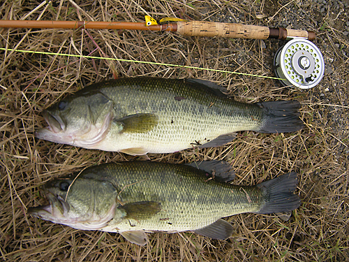 10月も残りわずかとなりました。今シーズンもいよいよ終盤です。 今回は、ちょっとやり残したことを一つ思い出し、 フライを作ってダム湖に釣りに出かけました。 ![]() フライを作るとボクの部屋は、このように散らかり放題になります。 やり残したこととは、例のワッキーフライのことです。 今回はちょっと進歩して、ハックルを付けてみました。 ![]() どうですコレ?いかにも釣れそうでしょ。 しかしながら、結論から言いますと、 コレがイマイチ釣れません(笑)。 なぜかは分かりませんが、前回も大して釣れませんでした。 今回はハックルを付けたので、見た感じも毛虫そっくりになり、 期待してたんですが......。 ルアーのワッキーリグと基本的に違うのは、ワームのような重さがないので、 自重による「自分で動いている感じ」というのが出せない点です。 リトリーブすると、いかにも人が背後で動かしているような、 ドラックがかかっているような、そんなアクションになってしまいます。 たぶんそれが出ない原因のような気がします。 まあ、置いておくだけなら釣れるのでしょうが...。 ![]() ということで、ここからはとりあえずワッキーはやめて、 いつものWest's Popperにチェンジ。 ロッドは久しぶりにフィリプソンEF86Bとマーキースマルチの組み合わせ。 West'sPopperに換えた直後に、ドバ!っと、 デカそうなバイトがあったのですが、これがフッキングせず、 しばらくして冠水した草の際で 再度、ドバ! ![]() 最初の1匹目は45cm。 その後は↓のような小バスが3匹ほど釣れました。 ![]() でもってその後、小便がしたくなり、入水地点に戻る途中、 池のど真ん中で移動中のポッパーに41cmが勝手にヒット。 こういうことって、結構よくありますね。 とくにこの時期は、いろんなところにバスが移動していて、 どこでヒットしてもおかしくないという感じでした。 ![]() ヘアバグに変えて、ゴミ黙りにキャスト! ズズズ、ポロリ、ポロリ、パコン!パコン!パコン! ポーズ・・・・・・・・・ ゴォボ! ゴミだまりの切れ目で凄まじいバイト ![]() このバス、コンディションがすこぶる良く、えらい重く感じました。 引きも凄かったっす! ![]() 岸に上がってメジャーで正確に測ると、これも45cmありました。 ![]() スカリから出して並べて撮影。 同じ45cmでも、ゴミだまりで釣ったバス(上)の方が、 最初に釣ったバス(下)よりも断然コンディションが良かったです。 同じ池で同じ長寸でも、固体差のコンディションはこれだけあるという見本でもあります。 やはり居場所によって食っているものも違うのでしょうか? いずれにしても、今回は、なかなかいい釣りができました。 しかし水温は日に日にじりじり下がってます。 今シーズンもあと1〜2週間くらいが限度でしょう。 それまでは何とか、いい釣りがしたいものです。 おわり リストへ戻る |